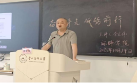 为推动广大党员、干部和群众深入学习贯彻习近平新时代中国特色社会主义思想,坚定理想信念,凝聚民族复兴力量,引导广大党员干部群众把学习成果转化为干事创业的实际行动。2025年10月14日,麻醉学院党委以“教师+学生”组合,围绕“奋勇争先,砥砺前行”主题,组织开展《习近平谈治国理政》第五卷宣讲活动。学院党委书记李宏伟主讲,王雅琪作了学习分享,宣讲会由孙文郁老师主持,全体党员、入党积极分子及2024级麻醉班全体同学共同参与。