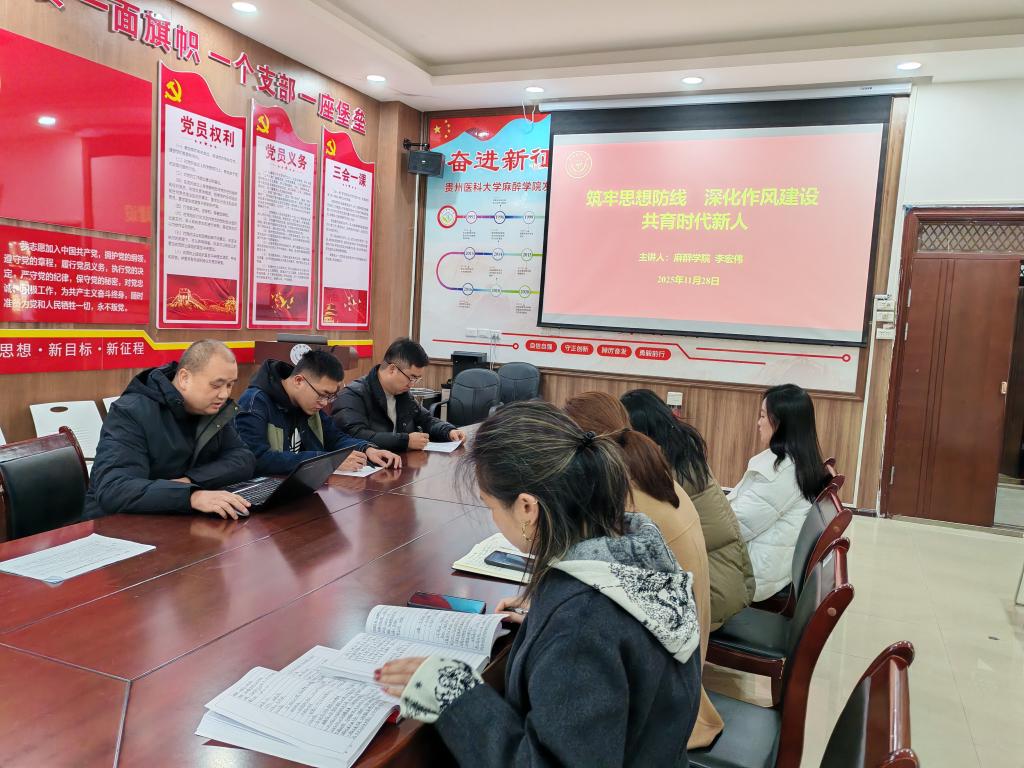 为落实全面从严治党、加强党风廉政建设,11月28日,麻醉学院党委书记李宏伟以《筑牢思想防线,深化作风建设,共育时代新人》为题在学院会议室上廉政党课,学院教职工党员、研究生党员代表参加此次学习。